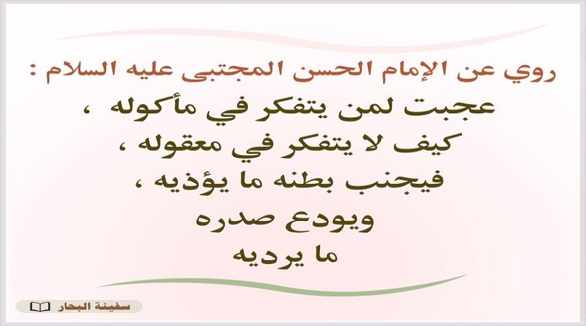 الإمام الحسن المجتبى(ع): عجب لمن يتفكر في مأكوله كيف لا يتفكر في معقوله .. )..المصدر : بحارالأنوار