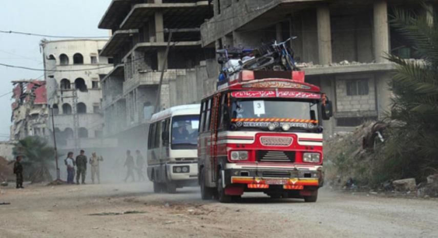 مغادرة 2556 مسلحا مع ذويهم مخيم اليرموك بدمشق
