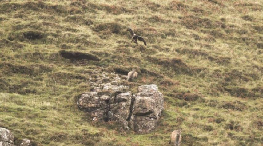 شاهد بالفيديو...نسر ينهش غزالة و هي حية!