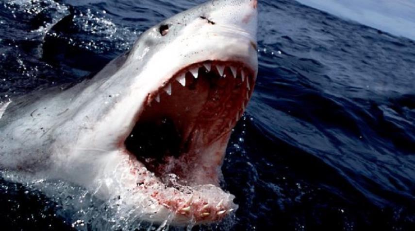 شاهد بالفيديو .. قرش يفترس بلا هوادة ويصبغ الماء باللون الأحمر