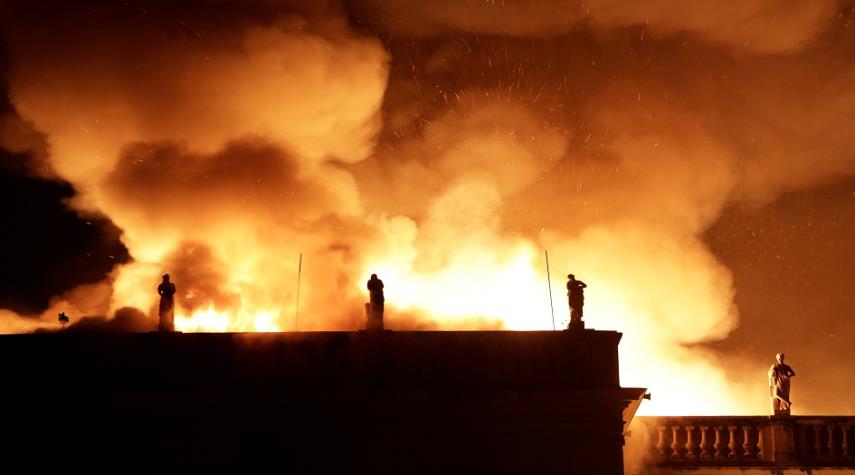 بالصور نشوب حريق هائل في المتحف الوطني بريو دي جانيرو البرازيلي