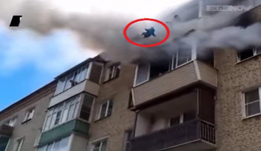ألقى أب روسي طفليه من النافذة لإنقاذ حياتهما، رغم أنّهم يقيمون في الطابق الـ5 في مدينة "سترونينو" القريبة من موسكو، وذلك بعد أن ضمن وجود 20 شخصاً من الجيران والمارة يحملون بساطاً مشمعاً تحت النافذة.