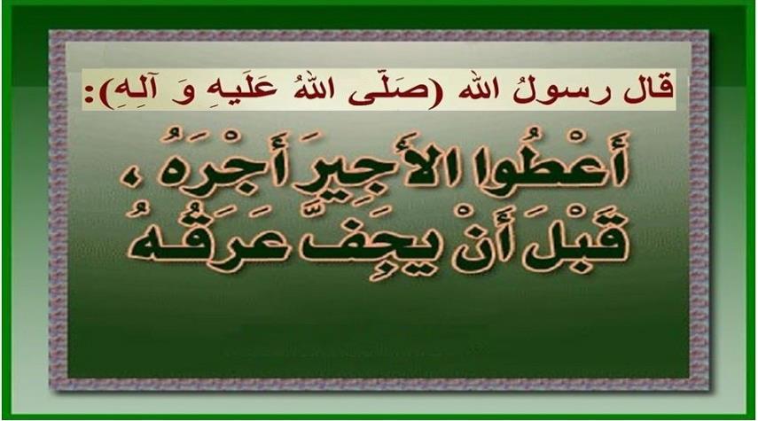 من حديث رسول الله (ص)..(22) (اعطوا الأجير أجره قبل أن يجفّ عرقه)