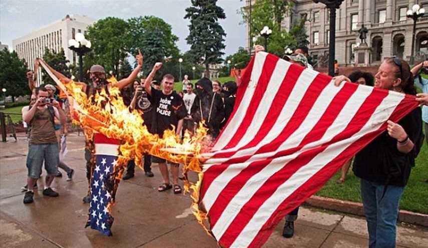 نشطاء يحرقون أعلاما أميركية بعد تغريدة لترامب