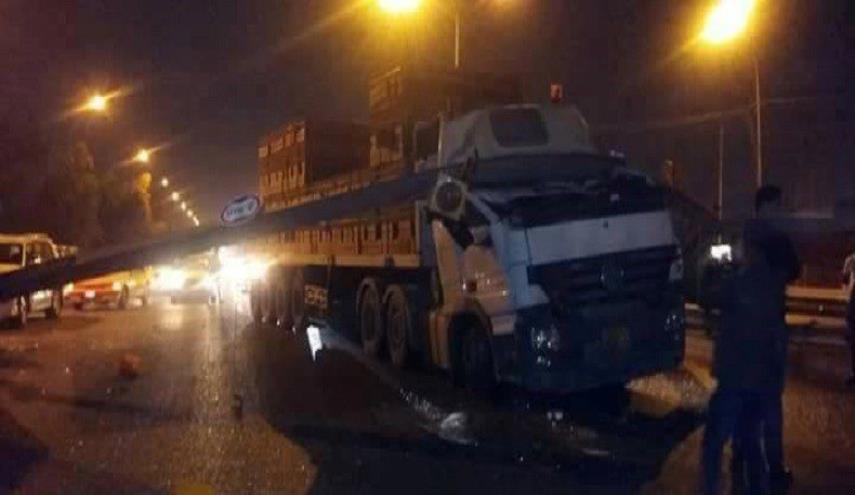 العراق _ الكوثر: بعدما شهد طريق محمد القاسم حادثين مروريين بسبب عارضة تم وضعها على الطريق لمنع سيارات الحمل من التوجه الى مجسر الطريق، قامت مديرية المرور العامة بوضع تنبيها جديدة تضاف الى العلامات والاضواء التحذيرية السابقة الموضوعة على الطريق.