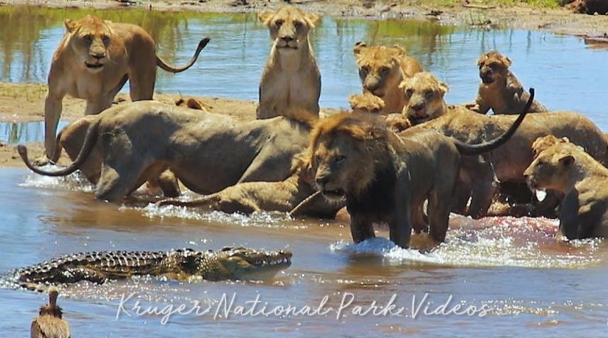 شاهد بالفيديو: ظبي شجاع يواجه قطيعا من الأسود وتمساح ينضم للمعركة