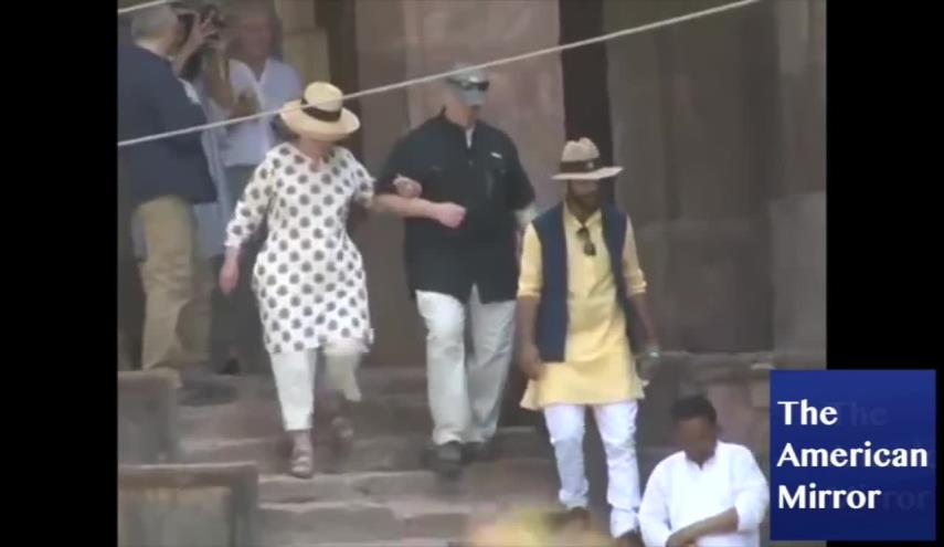شاهد بالفيديو.. هيلاري كلينتون تتعرض لموقف محرج في الهند