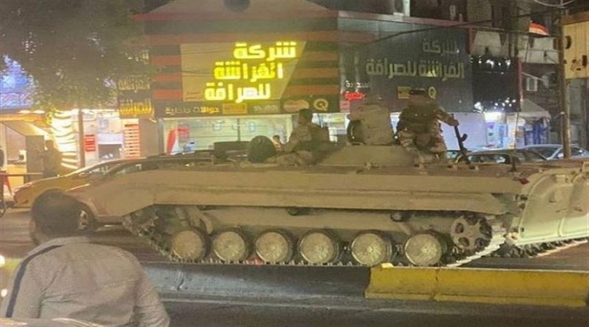 العراق - الكوثر: انتشرت عشرات الدبابات التابعة للجيش العراقي في بعض شوارع العاصمة بغداد، وتجولت في محيط المنطقة الخضراء حيث مقر إقامة رئيس الوزراء مصطفى الكاظمي.