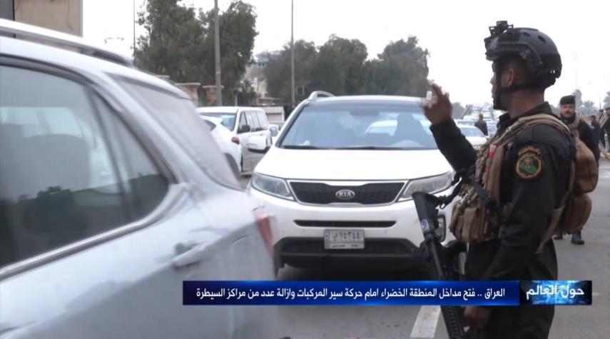 مديرية المرور العامة في العاصمة العراقية بغداد تعيد فتح مداخل المنطقة الخضراء امام حركة سير المركبات.