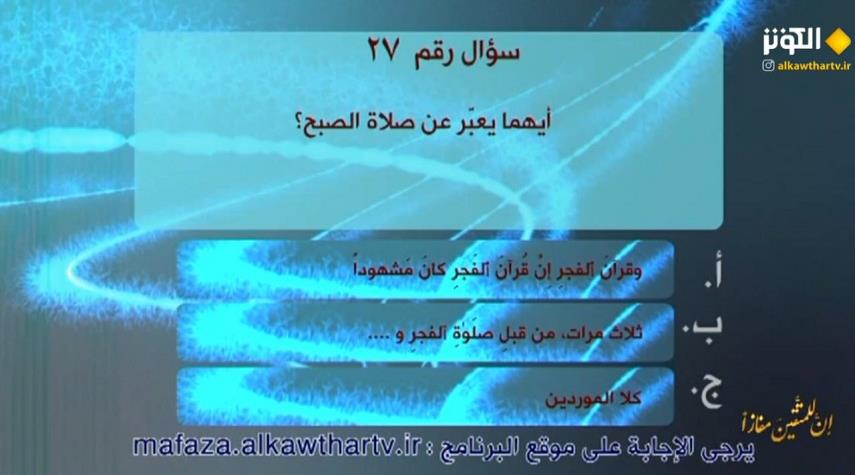 المسابقة القرآنية السابعة والعشرون من سلسلة الاسئلة القرآنية الخاصة بالمشاهدين ضمن المسابقة القرآنية ان للمتقين مفازا لعام 2023 ممن عمره 12 سنة فما فوق.
