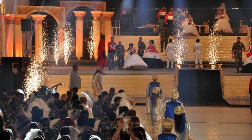 سوریا - الکوثر: شهدت محافظة اللاذقية السورية مساء امس الجمعة فعاليات أكبر عرس جماعي تحت عنوان "عالحلوة والمرة" لـ1100 شاب وشابة من جنود الجيش السوري وذوي الشهداء ومصابي الحرب من مختلف محافظات سوريا.