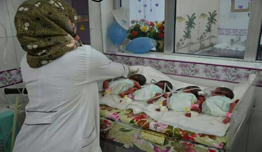 العراق - الكوثر: ولدت امرأة عراقية في محافظة البصرة جنوب البلاد اربع توائم، 3 ذكور وانثى.