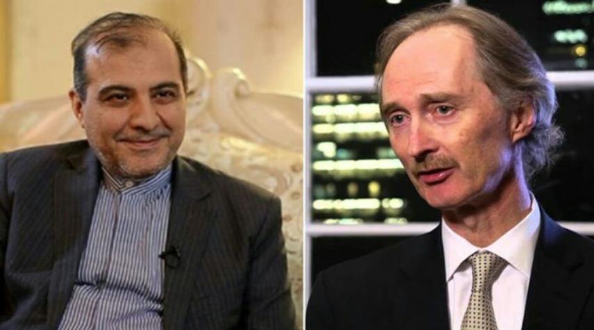 ايران _ الكوثر: تباحث كبير مساعدي وزير الخارجية الايراني علي اصغر خاجي هاتفيا مع مندوب الامين العام لمنظمة الامم المتحدة في الشان السوري غير بيدرسون بشان احدث التطورات في الساحة السورية.