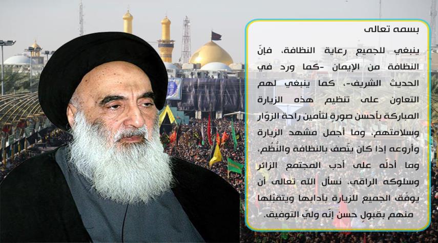 اسلاميات_الكوثر: في استفتاءٍ وُجّه الى مكتب سماحة المرجع الدينيّ آية الله العظمى السيد علي الحسينيّ السيستاني بشأن بعض المسائل التي تتعلّق بموضوع النظافة العامّة في طريق الزيارة الأربعينيّة المشرّفة.