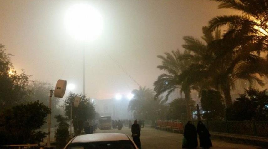 بالصور... مرقد الامام الحسين (ع) وسط ضباب كثيف