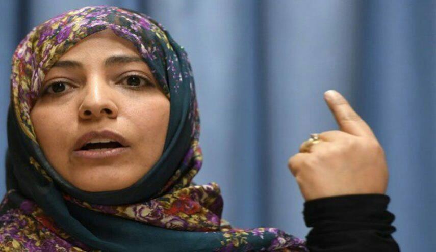 اليمن _ الكوثر: شنت الناشطة اليمنية المعروفة والحائزة على "نوبل" للسلام توكل كرمان، هجوما حادا على التحالف (السعودي- الإماراتي) في اليمن، والذي تحول من تحالف بحجة دعم الشرعية إلى مستعمر همه نهب ثروات اليمن وخيراته.