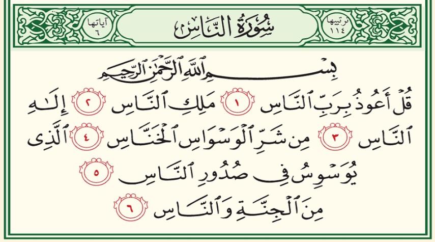 سورة الناس كاملة ومكتوبة..قرآنية المعوذتين.. مامعنى الوسوسة؟