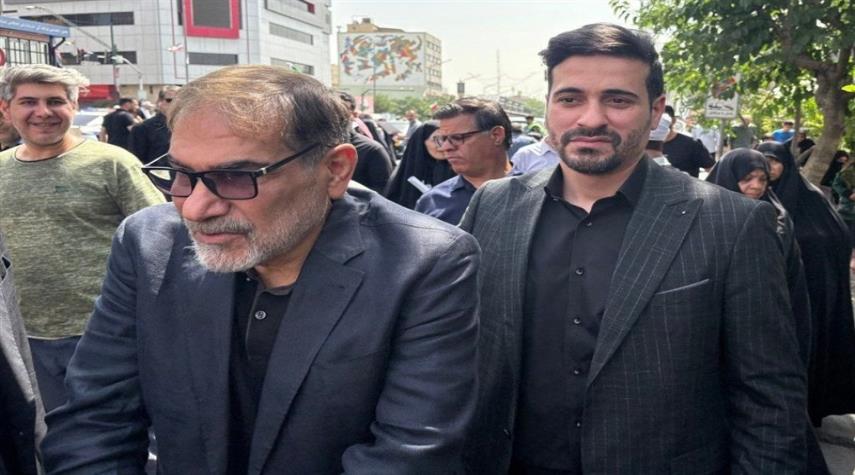 الادميرال شمخاني يشارك في تشييع جثامين شهداء العدوان الصهيوني