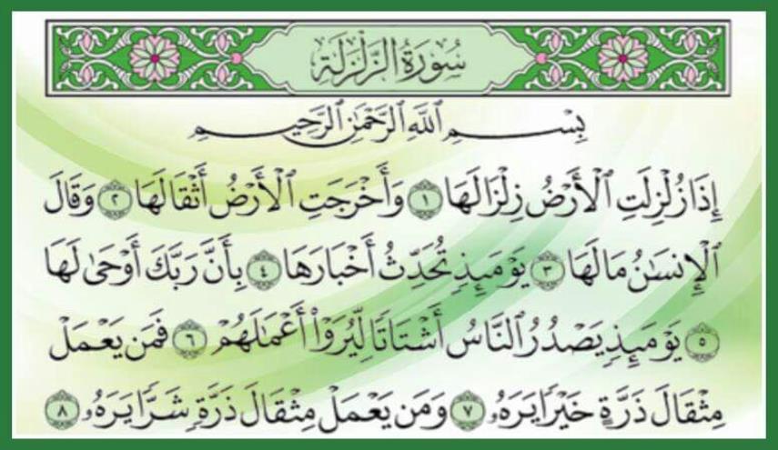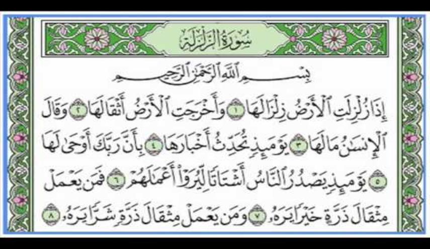 اسلاميات _ الكوثر: تفسير سورة الزلزلة و عدد آياتها 8 ( آية 1-8 ) وهي مدنية.