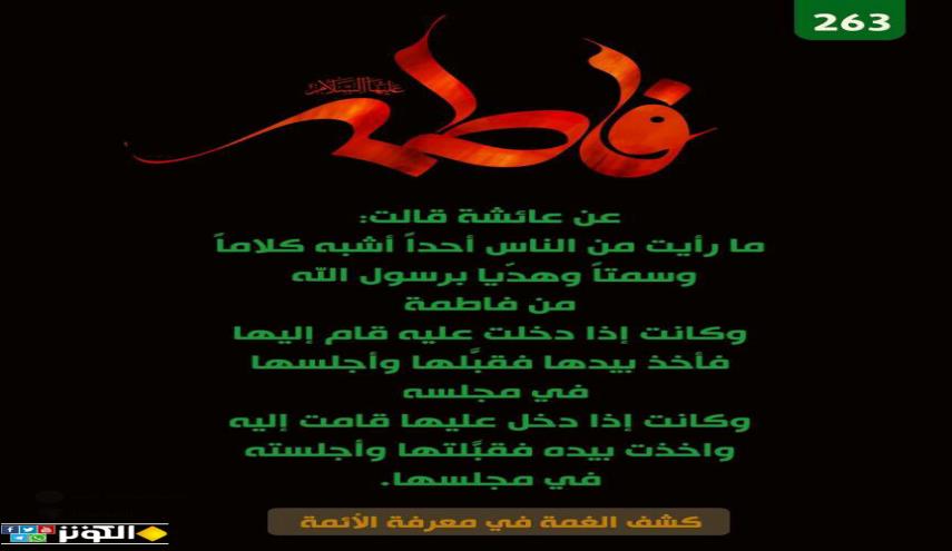 عائشة قالت: ما رأيت من الناس أحدا أشبه كلاما وسمتا وهديا برسول الله من فاطمة.