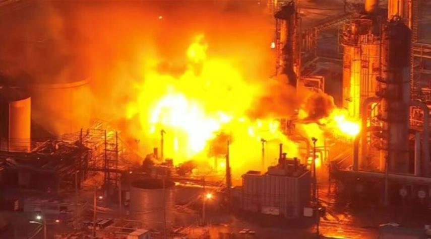الأميركيتان _ الكوثر: وقع انفجار كبير في مصفاة ماراثون للنفط في مدينة كارسون إحدى ضواحي مدينة لوس أنجلوس الأميركية، مما ادى إلى اندلاع حريق كبير في المصفاة، أمكن مشاهدته من على بعد مئات الأمتار.