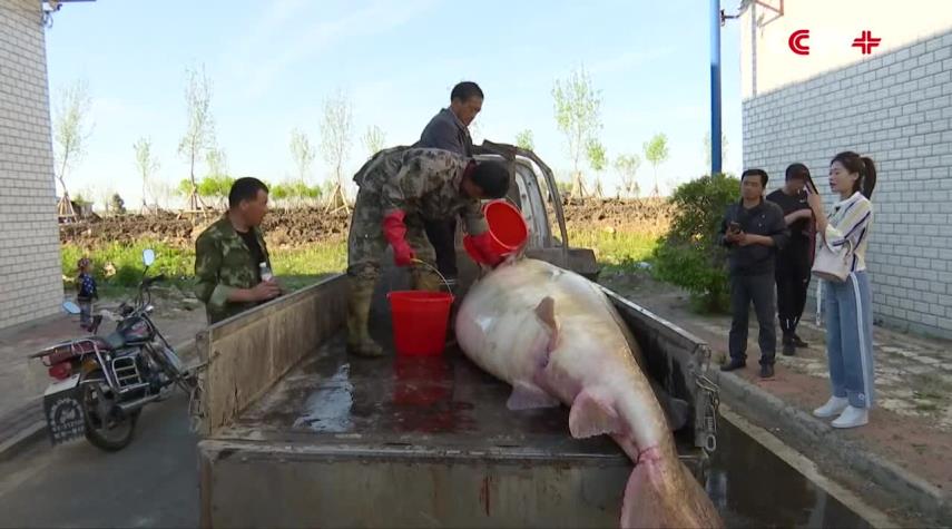 منوعات _ الكوثر: تمكن صياد صيني من اصطياد سمكة عملاقة من نوع "الحفش" في مدينة فويوان الصينية.