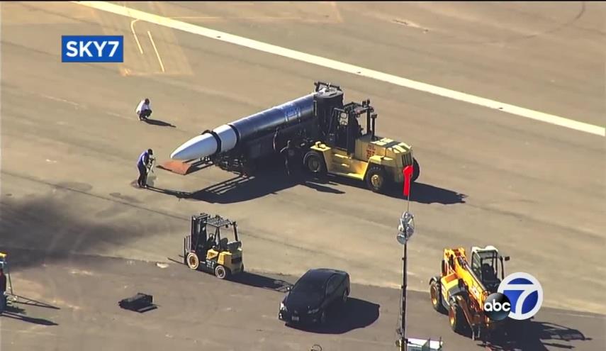الأميركيتان - الكوثر: انتشر على موقع "يوتيوب" مقطع فيديو تم اجتزاؤه من البث المباشر لإحدى القنوات الأمريكية، ظهر خلاله صاروخ "سري" مجهول النوع، تم رصده عبر طائرة للبث تابعة للقناة كانت تعمل فوق قاعدة بحرية في منطقة ألميدا الأمريكية.