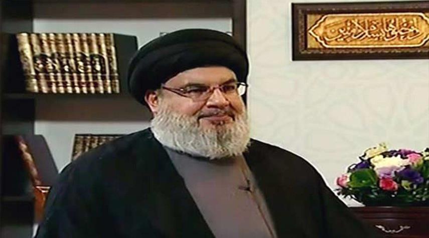 لبنان- الكوثر:لافتة معلقة على جدار خلف سماحة السيد حسن نصرالله أمين عام حزب الله خلال مقابلته مع قناة الميادين يوم أمس سببت الذعر الصهاينة والاعلام "الاسرائيلي".