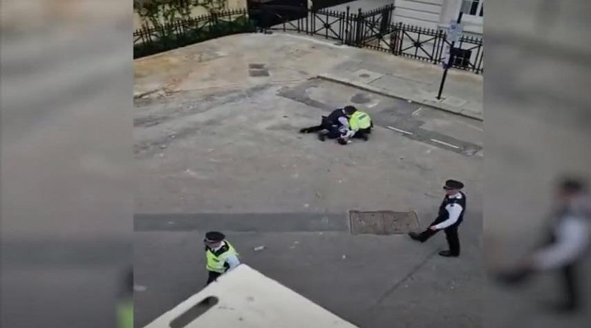 شاهد: مثيري الشغب.. هكذا قمعتهم الشرطة البريطانية أمام السفارة الايرانية في لندن