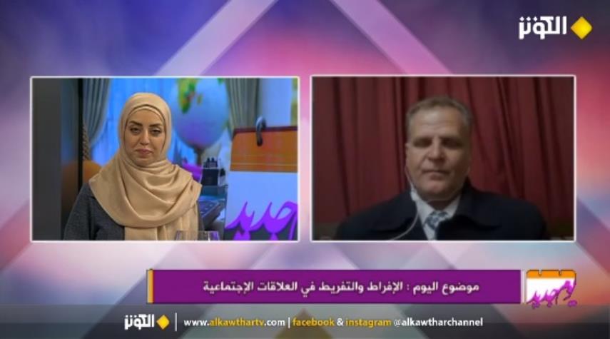 خاص الكوثر: برنامج يوم جديد يتناول بالدراسة أهم الأحداث الاجتماعية والفكرية والثقافية ، حيث تطرق البرنامج في هذه الحلقة الى موضوع : " الإفراط والتفريط في العلاقات الإجتماعية" في حوار مع الدكتور "محمد خير اللباديدي " إستشاري في التنمية البشرية والإرشاد النفسي من دمشق.