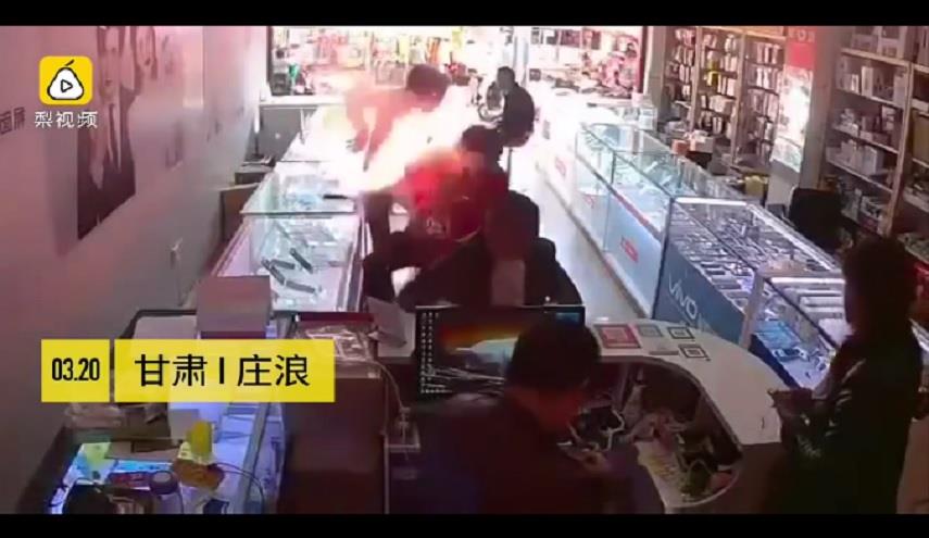 بالفيديو..انفجار هاتف يصيب رجلا بهلع شديد!