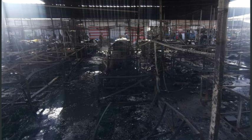 شاهد .. حريق كبير في سوق النبي يونس بمدينة الموصل بالعراق