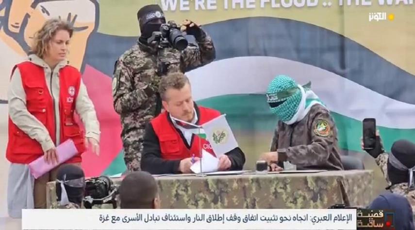 تفاؤل بشأن عملية استكمال عملية تبادل الاسرى بين المقاومة الفلسطينية وكيان الاحتلال، انعكس على الاعلام العبري حيث افادت قناة كان الاسرائيلية نقلاً عن مصادر فلسطينية بان حماس تنحو الى الافراج عن ثلاثة اسرى اسرائيليين ضمن الدفعة السادسة من المرحلة الاولى لاتفاق التبادل غداً السبت.