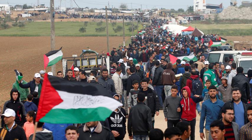 الاف الفلسطينيون يشاركون في جمعة «شعبنا سيسقط الوعد المشؤوم»