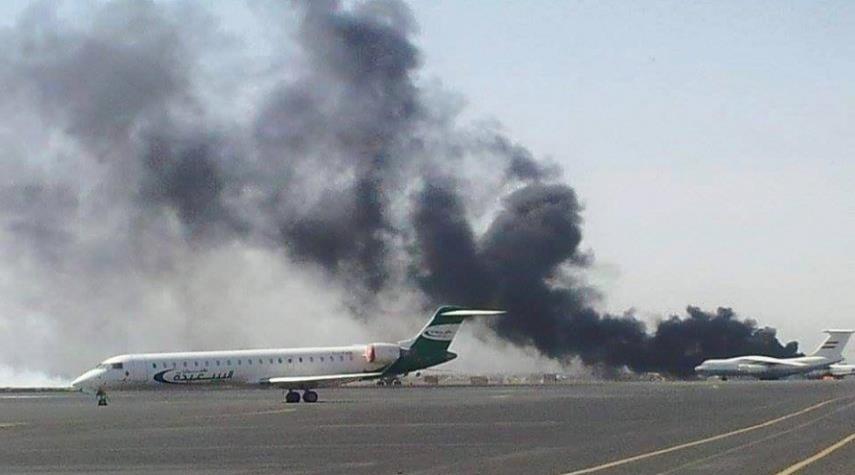 طيران العدوان السعودي الامريكي يواصل غاراته على مطار صنعاء الدولي