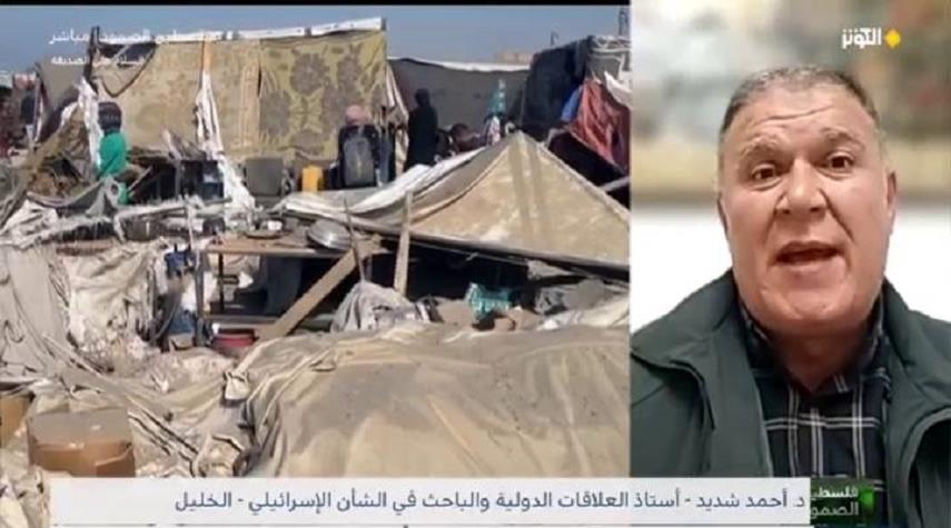 تحدث أستاذ العلاقات الدولية والباحث في الشأن الاسرائيلي الدكتور أحمد شديد خلال مشاركته في برنامج فلسطين الصمود عن محاولات الاحتلال إعادة الاستيطان في قطاع غزة.