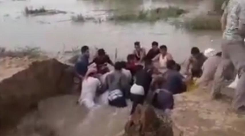 في مشهد لا يتكرر...شباب يصنعون بأجسادهم حواجز لصد السيول في إيران (فيديو)