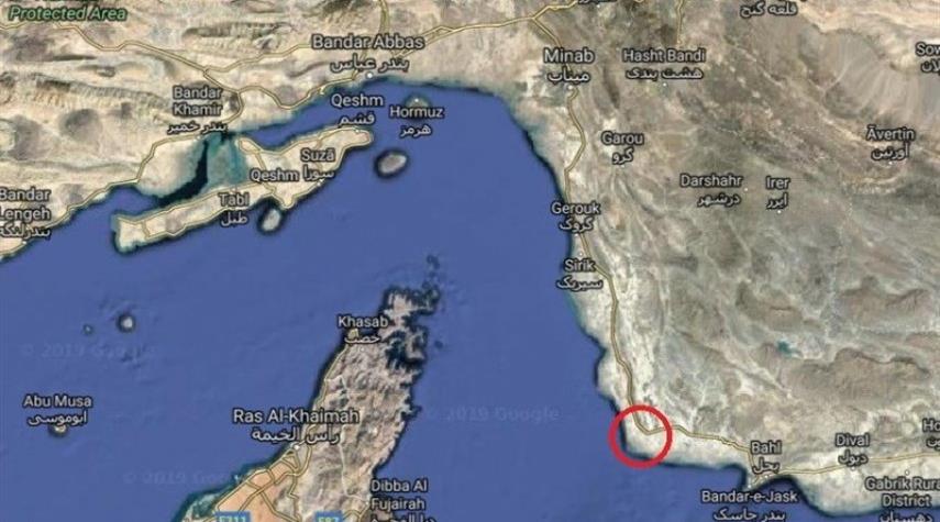 ايران - الكوثر: مسير الطائرة الأمريكية المحطمة RQ - 4A وموقع إسقاطها في بحر عمان قرب مضيق هرمز.