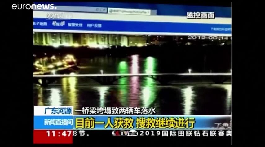 الصين-الكوثر: انهار قطاع كبير من جسر يمر فوق نهر واسع، مما أدى إلى سقوط سيارتين في المياه وفقدان شخصين، جنوبي الصين.