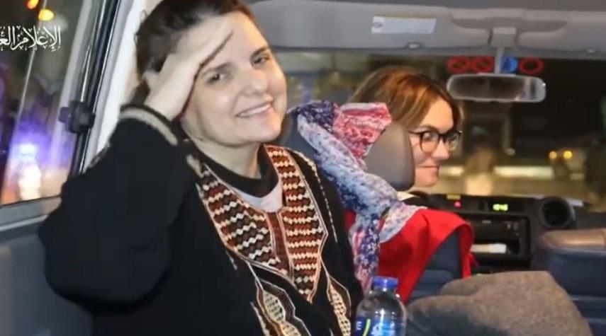 شاهد..أسيرة "إسرائيلية" تودع مقاتلي القسام وتؤدي لهم التحية العسكرية