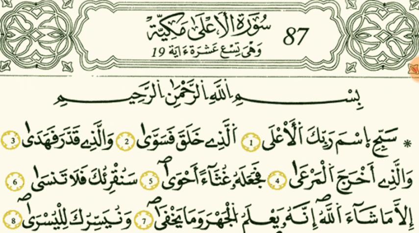 القرآن الكريم_الكوثر: سورة الأعلى - سورة 87 - عدد آياتها 19
