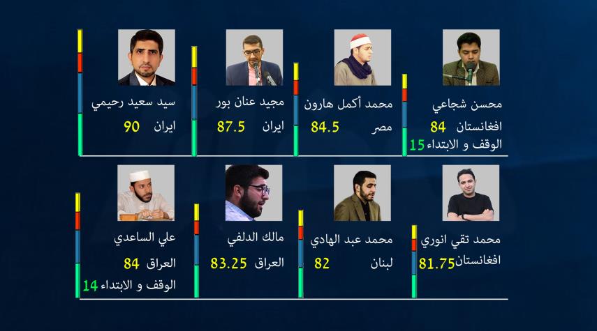 مفازا – خاص الكوثر: تأهل 8 من المتسابقين في الفصل الثاني من مرحلة التصفيات إلى المرحلة نصف النهائية من ايران ومصر وافغانستان والعراق ولبنان ليصل عدد المتأهلين إلى 16 قارئاً.