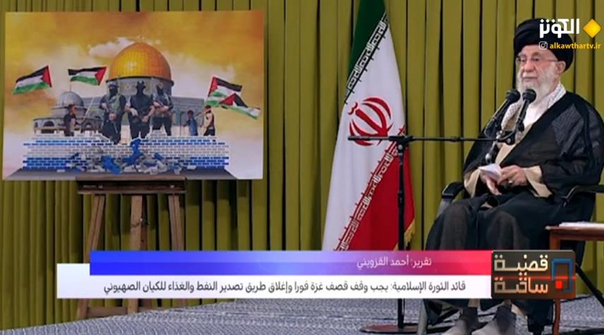 قضية ساخنة.. قائد الثورة الاسلامية يجب وقف قصف غزة فوراً و اغلاق تصدير النفط والغذاء للكيان الصهيوني