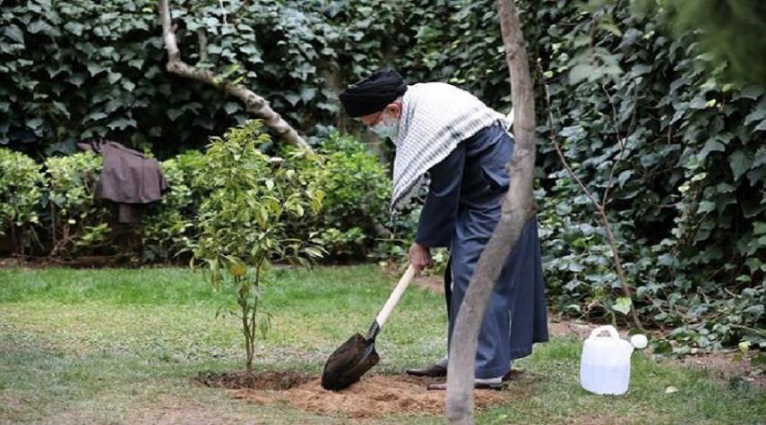 الإمام الخامنئي يغرس شجرة في أسبوع المصادر الطبيعية