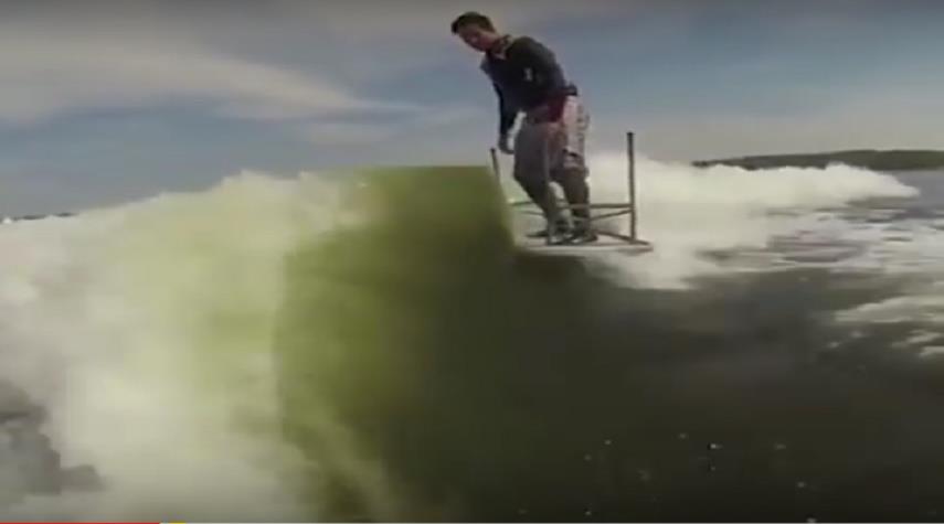 منوعات_الكوثر: نجح شاب كندي مغامر في ركوب الأمواج بواسطة طاولة مقلوبة رأسا على عقب.