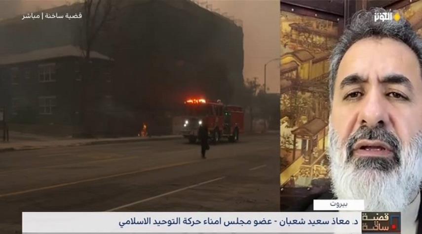 " موقف الجمهورية الإسلامية الإيرانية من كارثة الحريق في الولايات المتحدة الأمريكية " هو ماتحدث عنه الدكتور معاذ سعيد شعبان عضو مجلس امناء حركة التوحيد الإسلامي ضمن مشاركته في حلقة الأمس من برنامج قضية ساخنة .