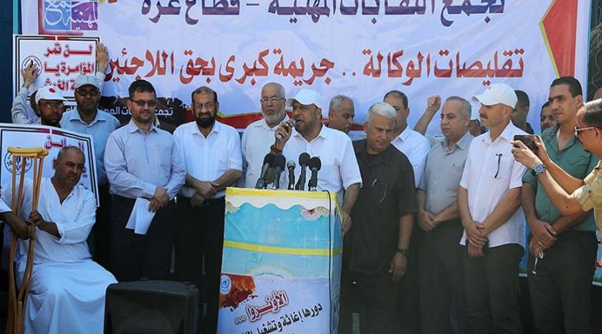 فلسطين - الكوثر: شارك المئات في قطاع غزة، يوم امس، بوقفة لمطالبة وكالة غوث وتشغيل اللاجئين الفلسطينيين "أونروا" بالتراجع عن قرار تقليص خدماتها.