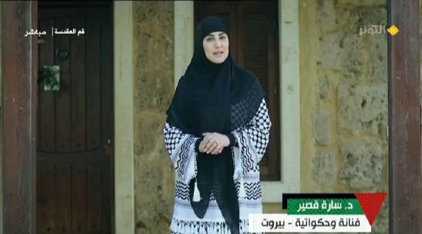 روت الحكواتية الدكتورة سارة قصير خلال مشاركتها في برنامج خلية حب عن " قصة أم مريم من اهالي غزة"