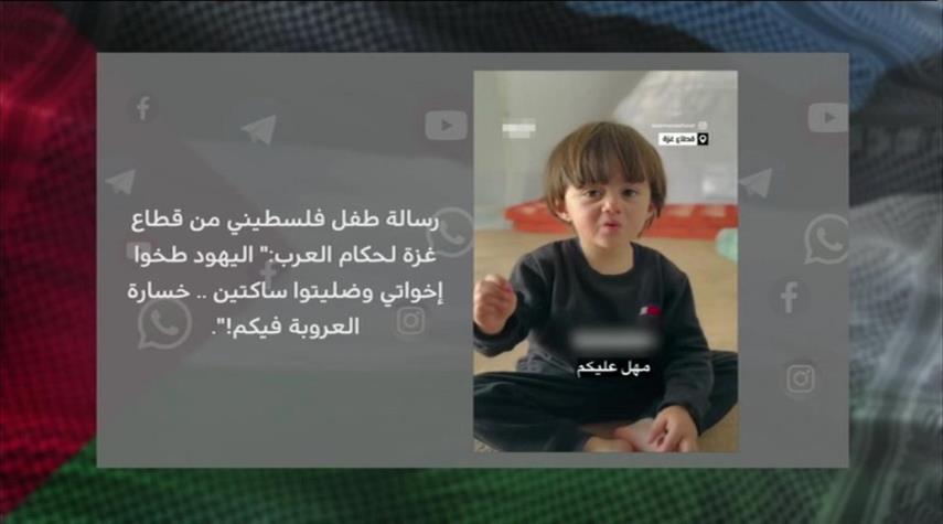 مقطع فيديو انتشر بشكل كبير في مواقع التواصل الاجتماعي يظهر طفل فلسطيني من قطاع غزة يوجه رسالة لحكام العرب..