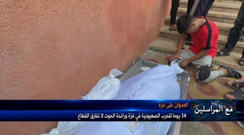 مع المراسلين ..34 يوماً للحرب الصهيونية في غزة و رائحة الموت لا تفارق القطاع